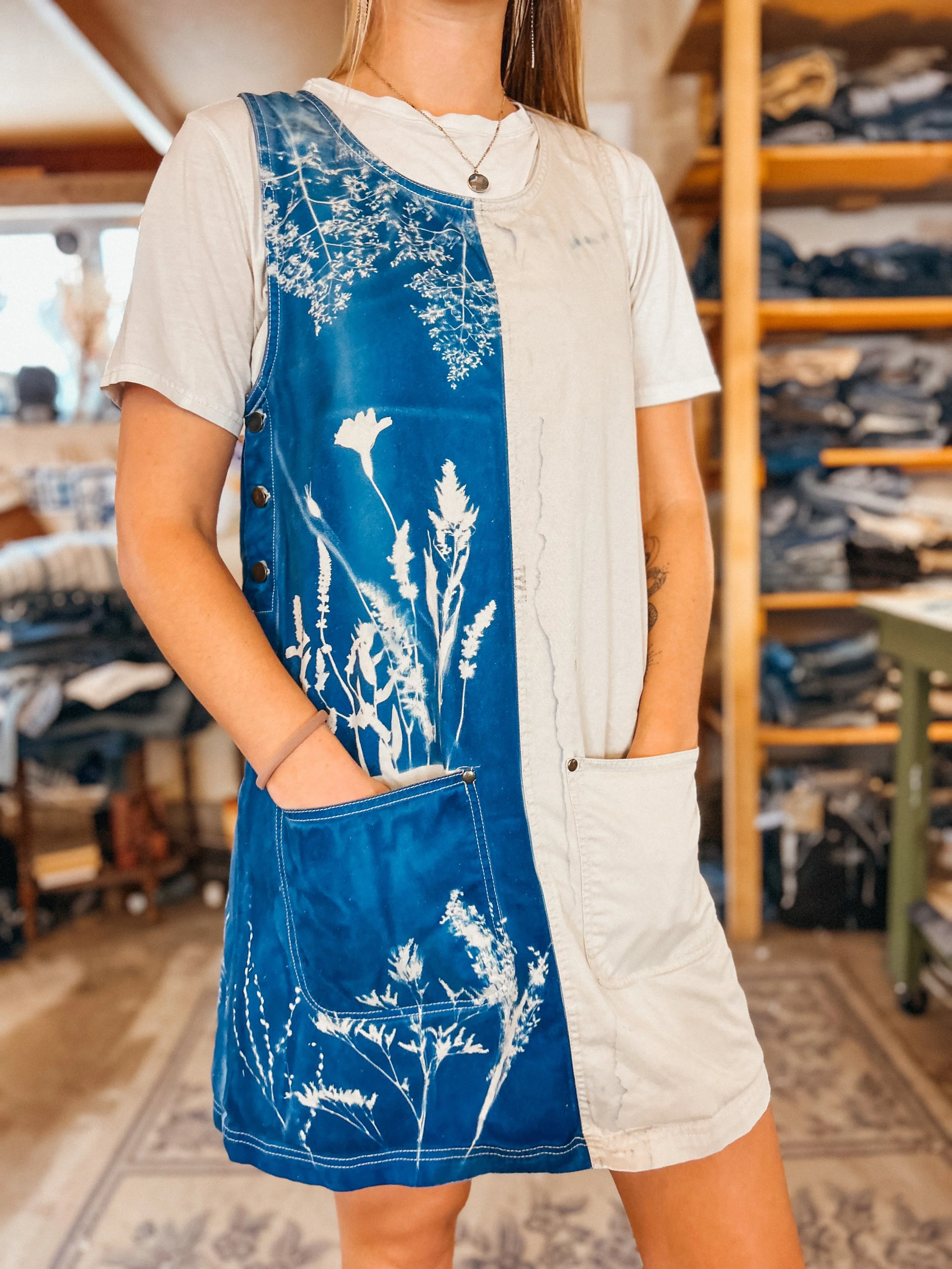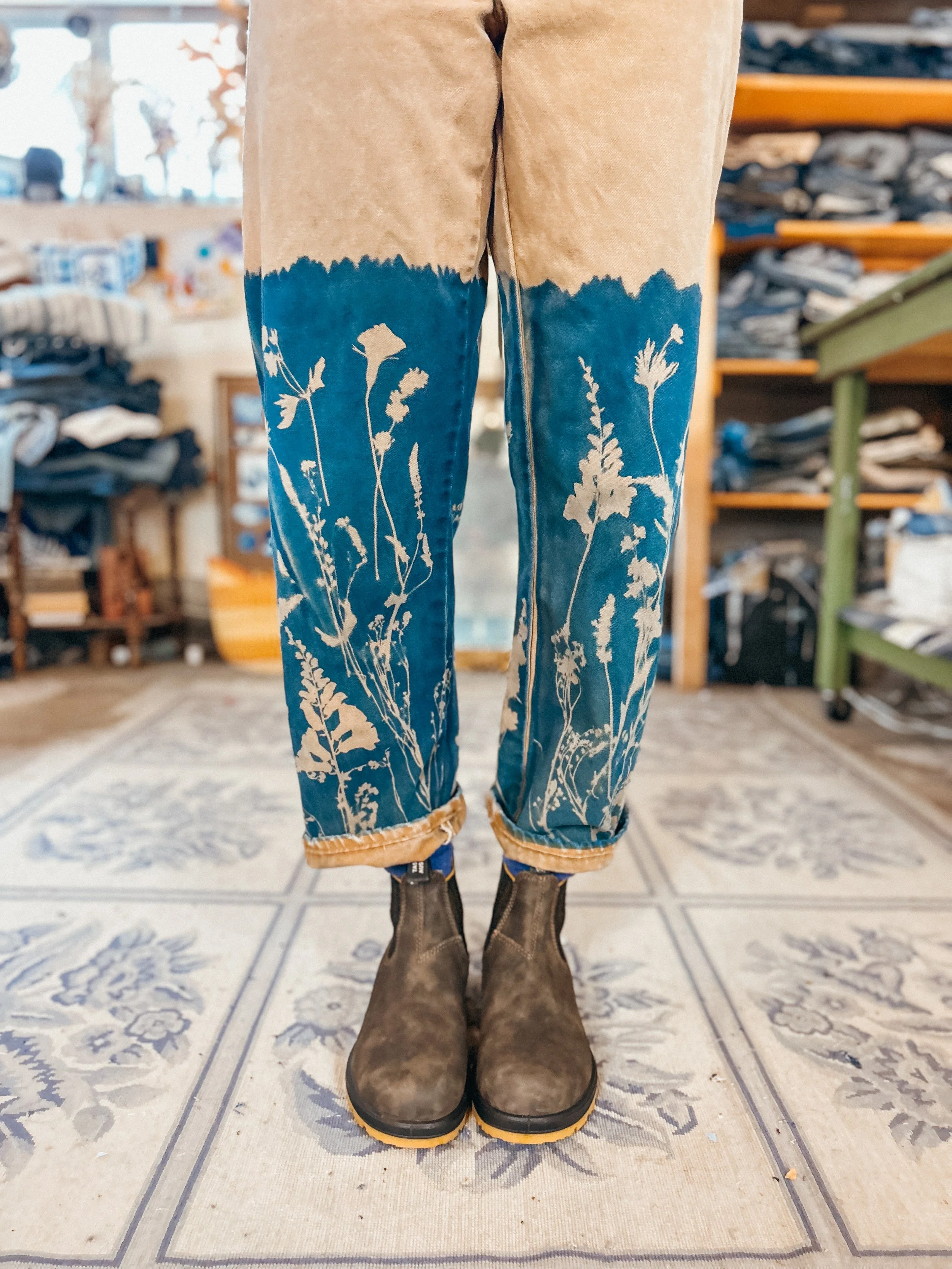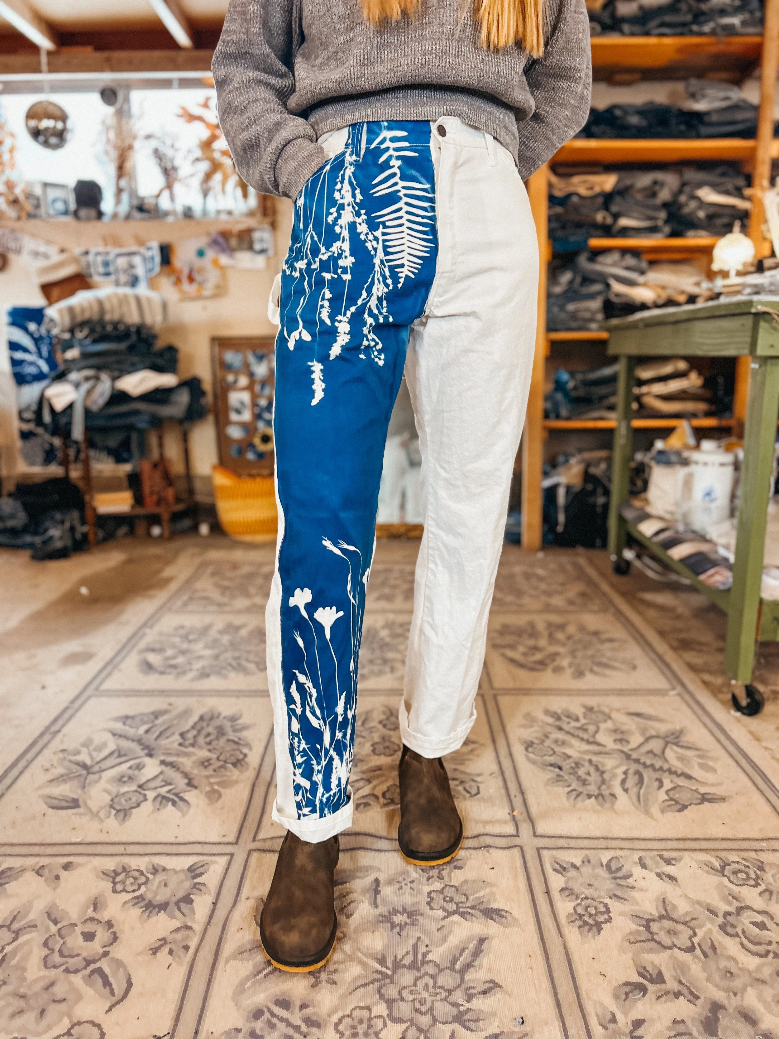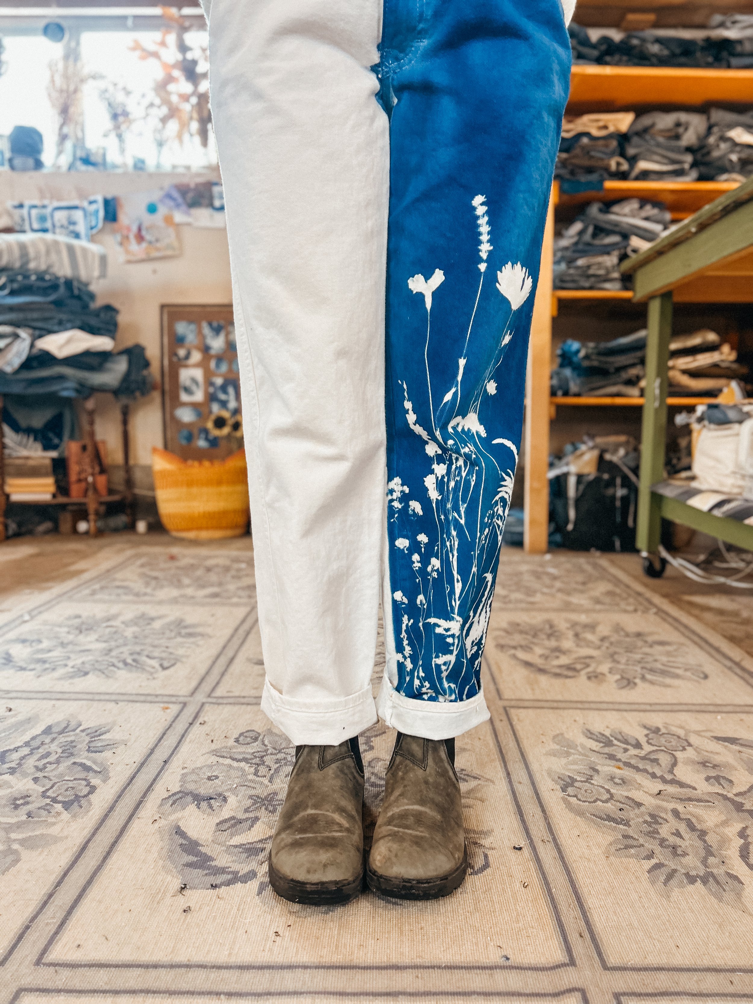 The KSX x Carhartt collection is a limited release that brings my cyanotype designs to classic Carhartt silhouettes in a fresh, whimsical way. The collection includes overalls, two shirts, a canvas hat, and a heavy-duty tote bag—all featuring nature-inspired prints that celebrate the beauty of the outdoors. A few pieces are available now in select Carhartt Company Stores, but the full collection is officially online! Stock is limited and selling quickly.